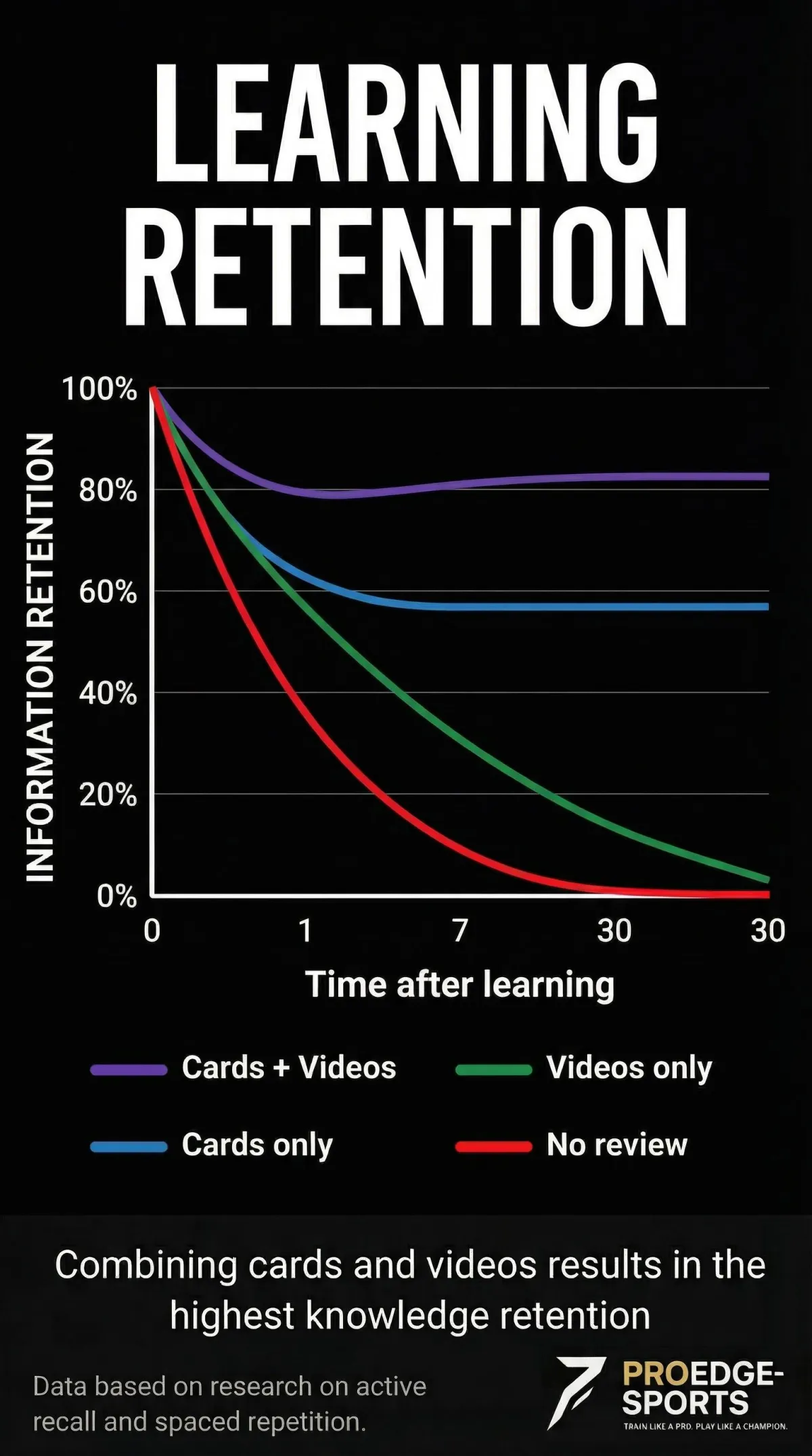 Research shows that players forget 70% of coaching advice within 24 hours. By combining Visual Cues (Cards) with Active Recall (Video), ProEdge keeps retention above 80%.
